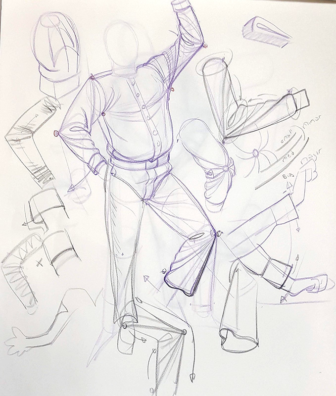 Course Description: This class will introduce students to the basics of drawing costume and drapery. Heavy emphasis will be placed on understanding not just the structure, but the also the mechanics of folds. We will start studying the basic gesture and forms of the nude figure as a basis for building the clothing around it. This class will give students a better sense of how to design and simplify drapery when drawing from life, reference, or imagination.
